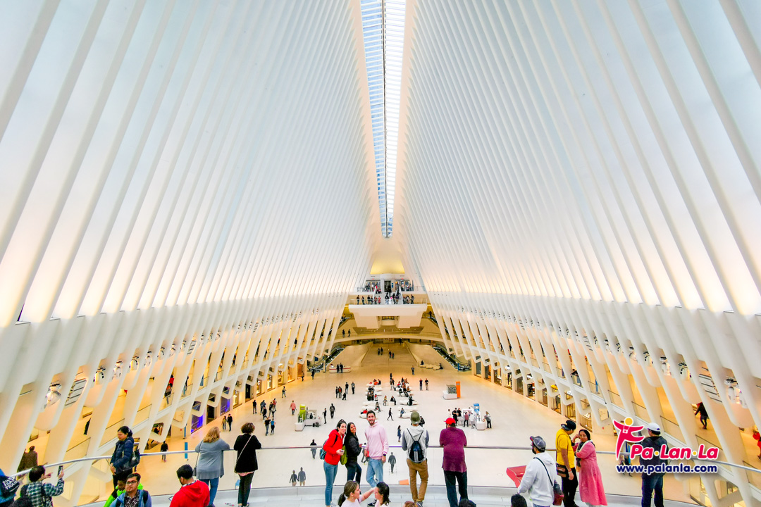 The Oculus อาคารรูปปีกนกสีขาว ศูนย์การขนส่งรถไฟใต้ดินและร้านค้า (World Trade Center Transportation Hub) ตั้งอยู่ใกล้กับพิพิธภัณฑ์และอนุสรณ์สถานแห่งชาติ 11 กันยายน ด้วยรูปทรงภายนอกที่แปลกตาคล้ายกับนกพิราบที่หลุดจากมือเด็กดึงดูดสายตาให้นักท่องเที่ยวต้องถ่ายภาพไว้ และภายในอาคารยังออกแบบเป็นโถงโล่งด้านล่างกว้างด้านบนแคบ มุมถ่ายภาพที่สามารถเก็บความโอ่โถงสวยงามนี้ไว้ได้คือบนชั้น 2 ที่จะได้ภาพของ The Oculusที่แปลกตาและสวยงามเป็นอย่างยิ่ง