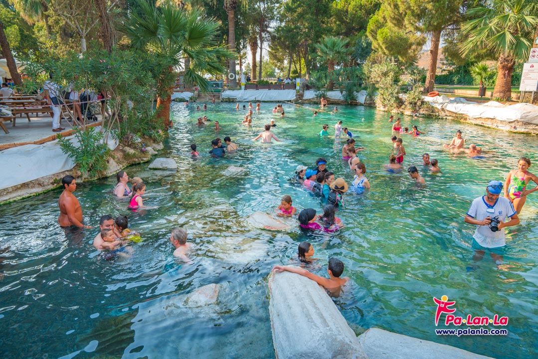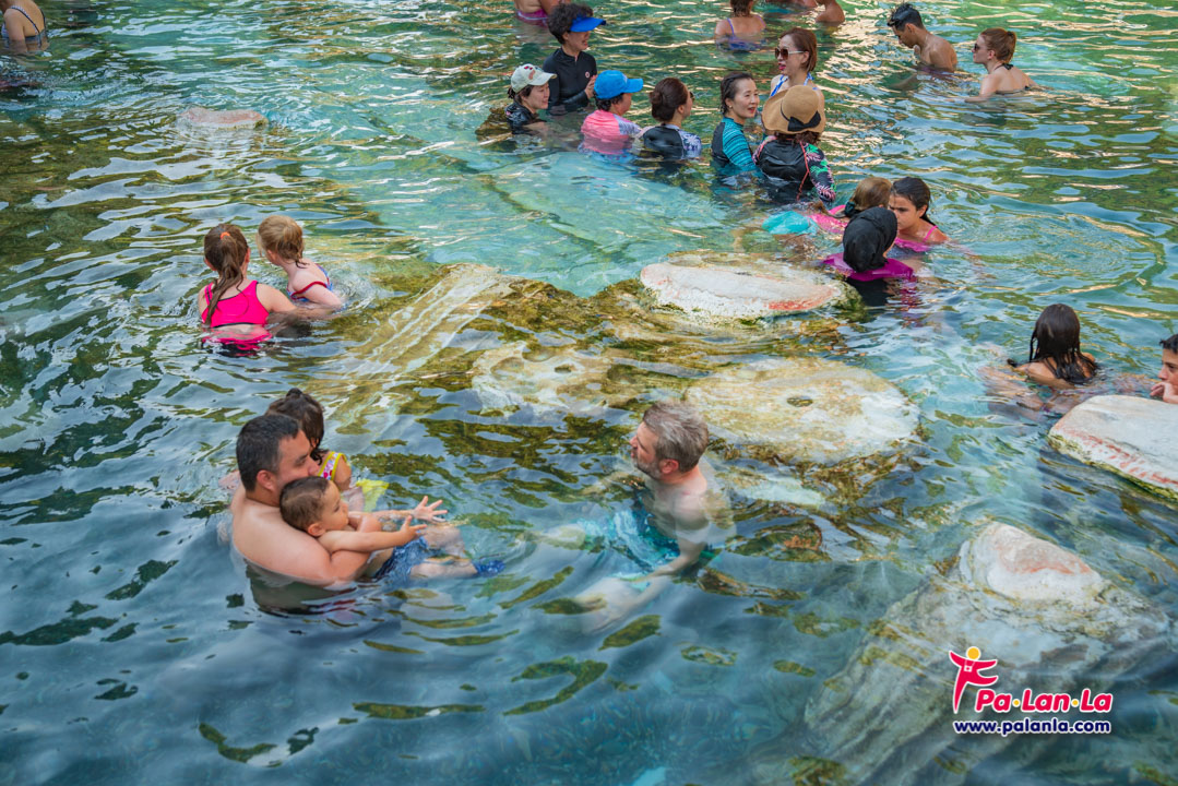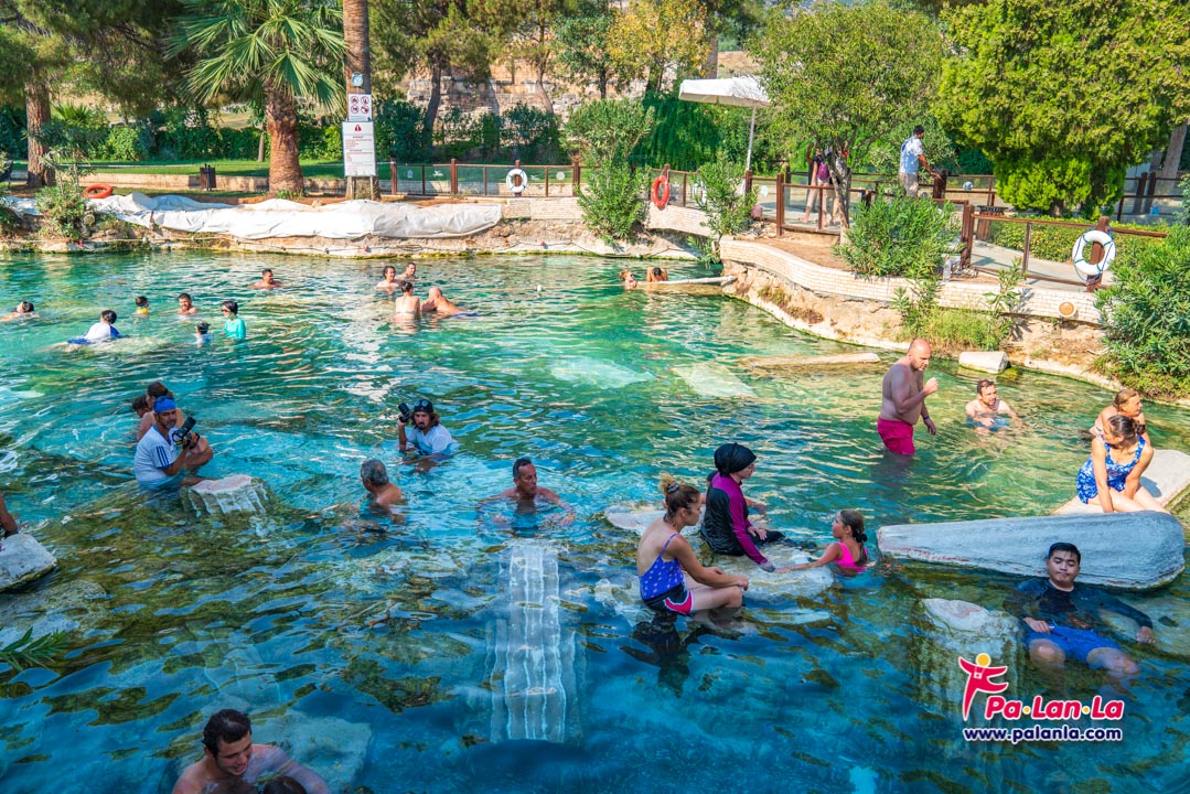 สระโบราณของคลีโอพัตราแตกต่างจากแอ่งน้ำอื่นๆ บริเวณด้านล่างของปามุคคาเล่ คือ น้ำในสระที่นี่เป็นน้ำอุ่นใสบริสุทธิ์