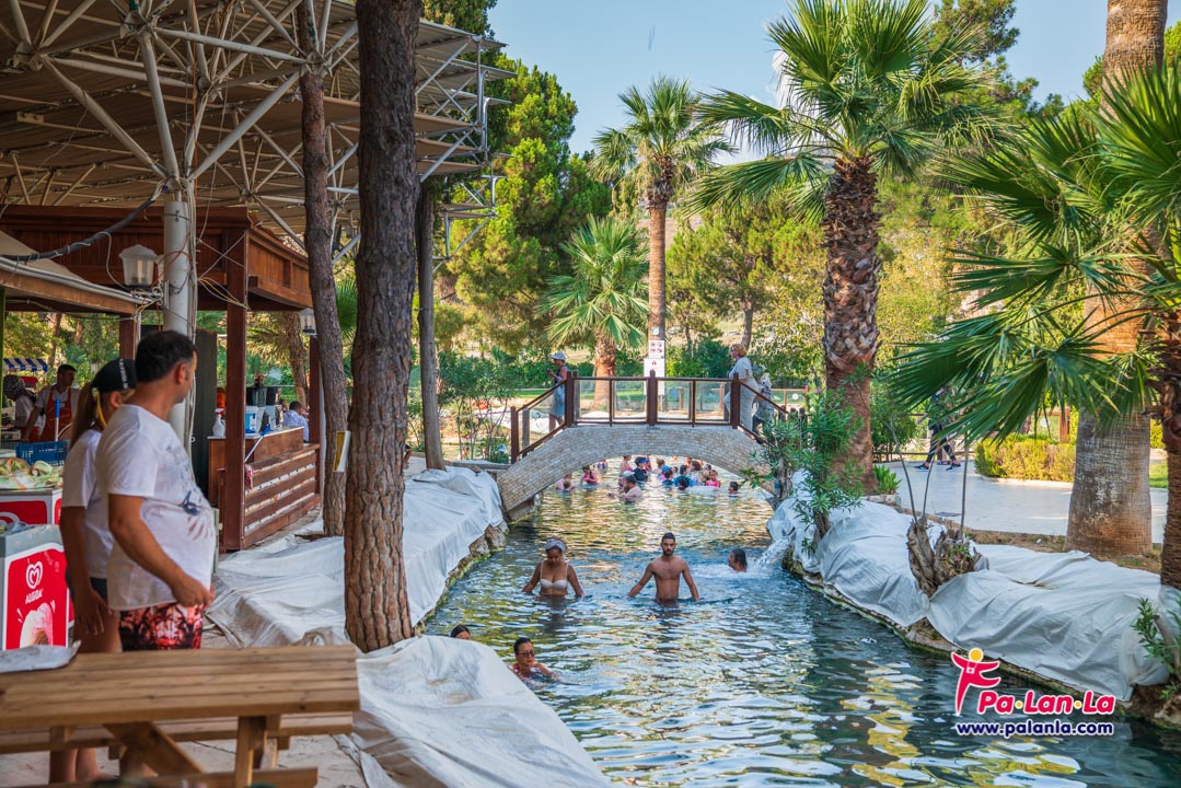 สำหรับผู้ที่ไม่ได้ลงเล่นน้ำ ก็มีพื้นให้นั่งเล่นเพลิดเพลินไปกับดอกไม้และต้นไม้เขียวขจีรอบสระว่ายน้ำในบรรยากาศที่ผ่อนคลาย รวมถึงสามารถมองเห็นซากปรักหักพังอื่นๆ ของ Hierapolis ได้ด้วย และในบริเวณเดียวกันยังมีสถานบริการสปาทันสมัยที่ดำเนินงานอย่างมืออาชีพ สำหรับเป็นทางเลือกให้นักท่องเที่ยวผ่อนคลายความเมื่อยล้าด้วยเช่นกัน