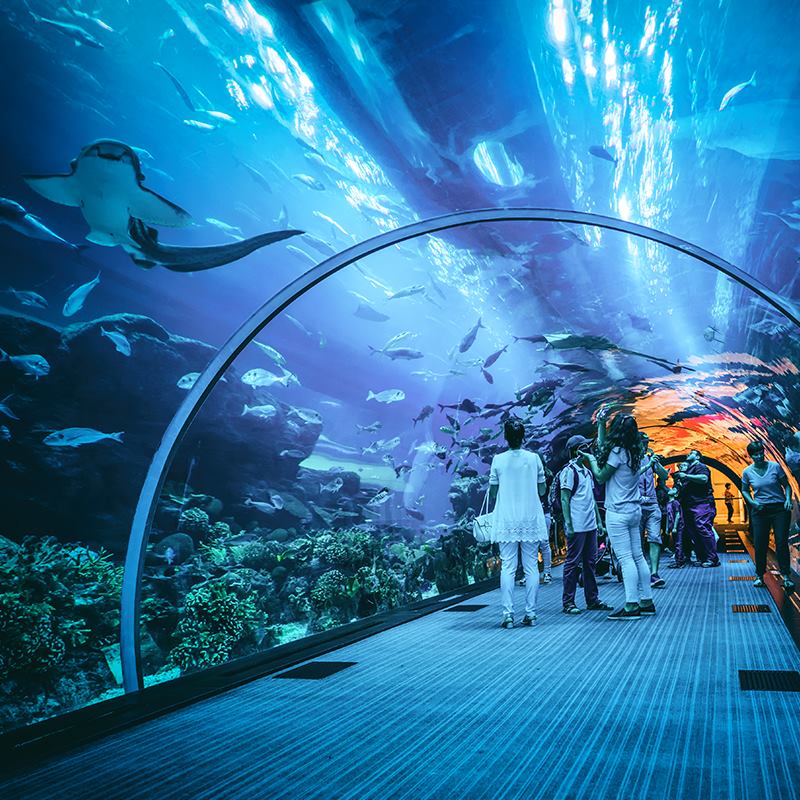 พิพิธภัณฑ์สัตว์น้ำดูไบ (Dubai Aquarium) พิพิธภัณฑ์สัตว์น้ำในร่มที่ใหญ่ที่สุดอันดับ 8 ของโลกแห่งนี้ถือเป็นแหล่งเรียนรู้ทางทะเลที่มีสิ่งมีชีวิตใต้ท้องทะเลให้เยี่ยมชมกว่า 33,000 ชนิด พร้อมกิจกรรม และการแสดงต่างๆ ให้ผู้เข้าชมได้สัมผัสบรรยากาศของโลกใต้ท้องทะเลอย่างจุใจ