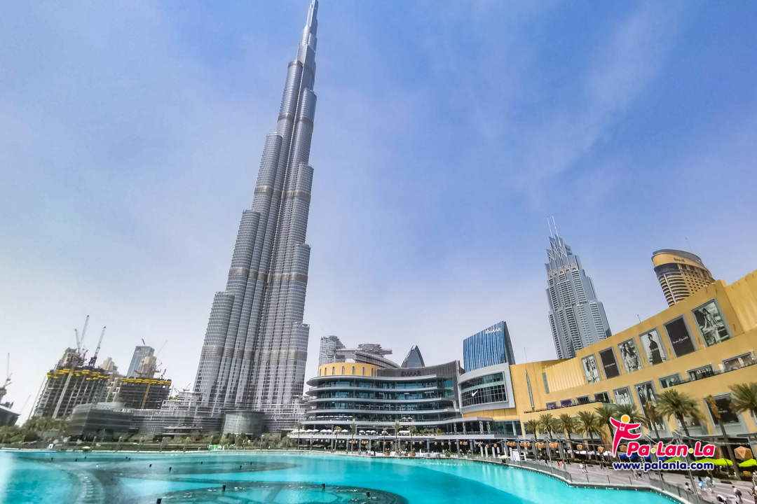 ทัศนียภาพของอาคารเบิร์จ คาลิฟาเมื่อมองมาจากลานน้ำพุขนาดใหญ่หน้าอาคาร