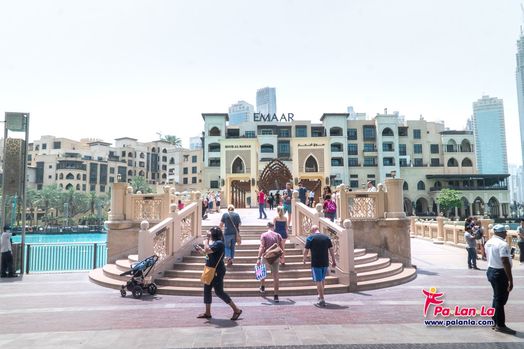 พื้นที่ด้านหน้าอาคารเบิร์จ คาลิฟาที่มีสระน้ำพุขนาดใหญ่อยู่ตรงกลาง