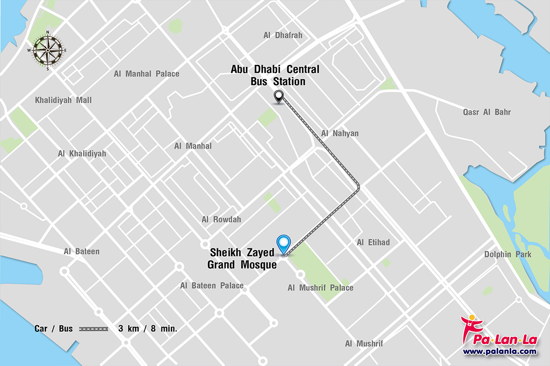 การเดินทางจากสถานีขนส่งสาธารณะหลักของเมืองอาบูดาบีไปยังมัสยิดหลวงเชคซัยยิด