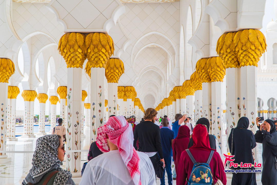 การเข้าชมมัสยิดหลวงเชคซัยยิด (Sheikh Zayed Grand Mosque) ต้องแต่งกายให้เรียบร้อย โดยผู้ชายจะต้องใส่กางเกงขายาว และเสื้อสีสุภาพ หรือใส่ชุดสีขาวคลุมยาวแบบอาหรับ ผู้หญิงใส่ชุดอะบาญ่าคลุมยาวสีสุภาพ พร้อมผ้าคลุมญิฮาบ โดยทางมัสยิดมีชุดให้บริการยืมฟรี สำหรับผู้เข้าชมที่ไม่ได้แต่งตัวมาตามระเบียบที่ทางมัสยิดกำหนด