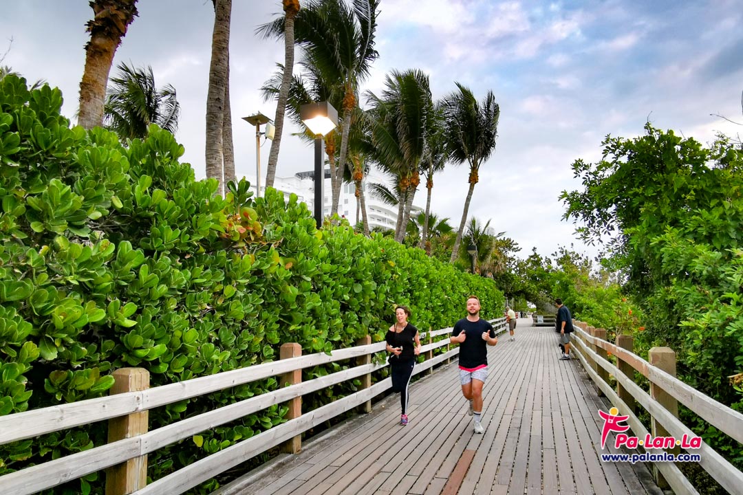 นักท่องเที่ยววิ่งออกกำลังกายตามเส้นทาง Miami Beach Boardwalk