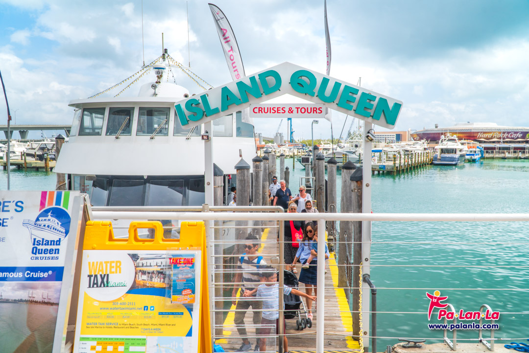 อ่าวบิสเคย์น (Biscayne Bay) เมืองไมอามี่ รัฐฟลอริดา ประเทศสหรัฐอเมริกา เป็นอ่าวที่มีความสวยงามและมีความพร้อมของภูมิประเทศในการทำธุรกิจท่าเรือเป็นอย่างยิ่ง โดยตั้งอยู่ระหว่างหาดไมอามี่กับไมอามี่แผ่นดินใหญ่ จึงเหมาะกับการเป็นท่าเทียบเรือ และบริเวณนี้ยังเป็นที่ตั้งของศูนย์การค้าเบย์ไซด์มาร์เก็ตเพลส (Bayside Marketplace) ซึ่งมีบาร์ ร้านอาหาร และร้านค้าให้บริการทั้งกลางวันและกลางคืน รวมถึงมีโรงแรมที่พักให้บริการหลายแห่ง นักท่องเที่ยวจึงสามารถใช้เวลาพักผ่อนได้อย่างเต็มที่ที่นี่ และบริษัทไอส์แลนด์ควีนครุยส์แอนด์ทัวร์ส (Island Queen Cruises & Tours) เป็นบริษัทหนึ่งที่ให้บริการเรือสำราญที่หลากหลายทั้งเรือสำราญ เรือชมวิว เรือจัดปาร์ตี้สังสรรค์ เรือตกปลา และสปีตโบ๊ท ในราคาที่แตกต่างกันไป