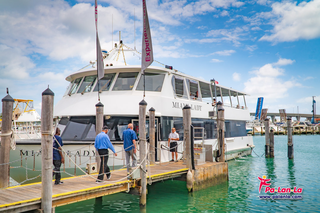 เรือจะพาชมรอบอ่าวบิสเคย์น, ชมเส้นขอบฟ้าของไมอามี่สกายไลน์, ท่าเรือไมอามี่, เกาะฟิชเชอร์, คฤหาสน์สุดหรูและตึกสูงริมอ่าวบิสเคย์น ใช้เวลาล่องเรือประมาณ 90 นาที