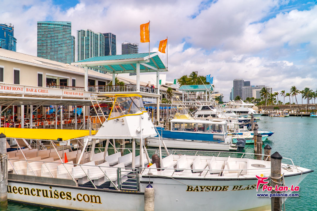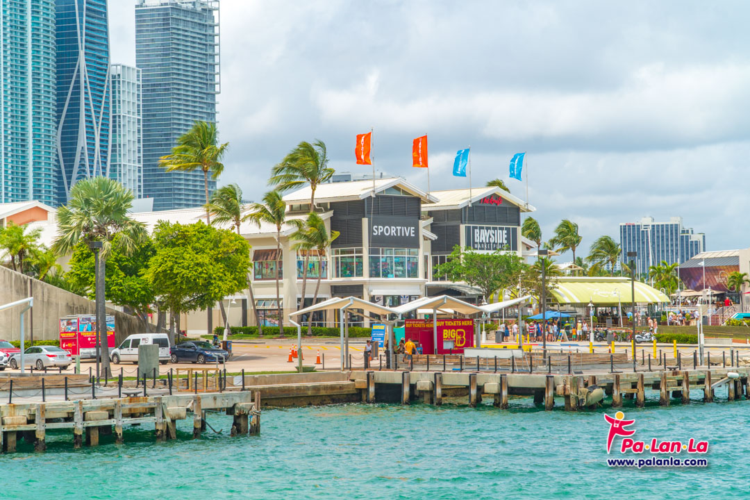 เมื่อล่องเรือผ่าน Bayside Marketplace จะเห็นท่าจอดรถ Big Bus Miami