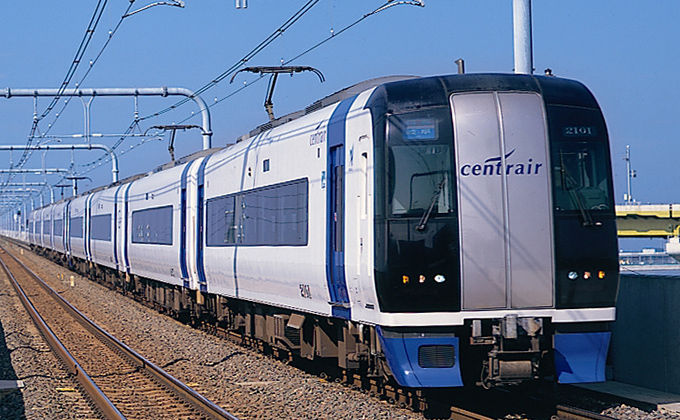 การเดินทางด้วยรถไฟจากสนามบินแห่งนี้มีเพียงสายรถไฟ เมเท็ตสึ (Meitetsu) เส้นทางรถไฟเอกชนที่มีคุณภาพ และเป็นทางเลือกที่สะดวกสบายที่สุดสำหรับผู้โดยสารที่ต้องการเดินทางเข้าเมือง ซึ่งภายในโซนแอซแซส พลาซ่า จะมีเครื่องจำหน่ายตั๋วอัตโนมัติของบริษัทเมเท็ตสึ หรือจะซื้อโดยตรงจากพนักงานบริการของบริษัทก็ได้ โดยมีเที่ยวรถไฟให้เลือก 3 ขบวน มีราคาค่าโดยสารเท่ากันทุกขบวน ต่างกันแค่ระยะเวลาที่ใช้ในการเดินทาง และความสะดวกสบายของตู้โดยสารของขบวนรถไฟ สามารถตรวจสอบตารางเวลาการเดินรถ ราคา และข้อมูลอื่นๆ เพิ่มเติมได้ที่ https://www.centrair.jp/en/access/train.html