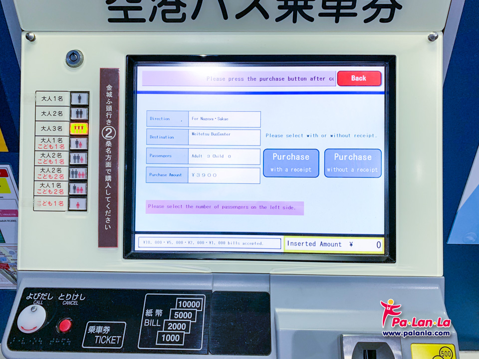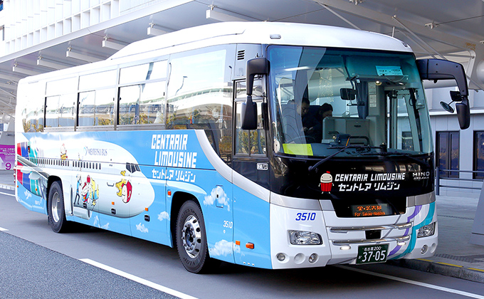 เป็นอีกช่องทางการเดินทางเข้าสู่ตัวเมืองนาโกย่าที่สะดวกสบาย เหมาะกับคนที่มีสัมภาระเยอะ หรือมากันหลายคน โดยจะเป็นรถบัสเซ็นแทร์ ลิมูซีน (Centrair Limousine) ซึ่งผู้โดยสารสามารถซื้อตั๋วที่โซนแอซแซส พลาซ่า แล้วเดินไปขึ้นรถที่สถานีรถบัส (Centrair Bus Terminal) ที่อยู่ในบริเวณเดียวกัน หรือจะซื้อผ่านตู้ขายตั๋วอัตโนมัติก็ได้ ซึ่งขั้นตอนการซื้อบัตรโดยสารผ่านเครื่องมีดังนี้