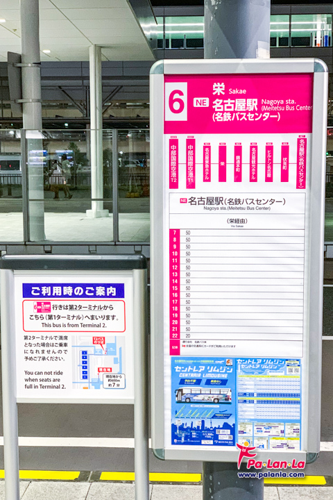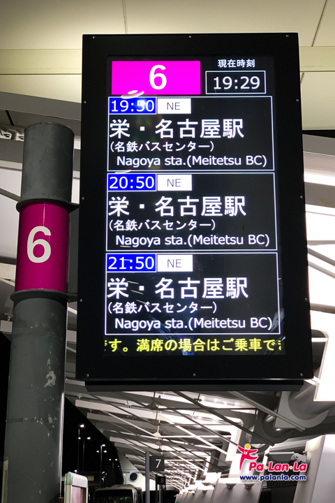 ป้ายรอรถบัสไปยังสถานีนาโกย่าของท่ารถบัสประจำสนามบิน