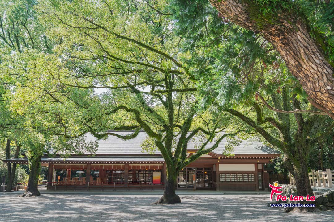 บรรยากาศอันร่มรื่นบริเวณด้านหน้าศาลเจ้าหลัก