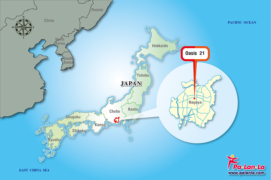 แผนที่ตั้ง อาคารโอเอซิส 21 เมืองนาโกย่า ประเทศญี่ปุ่น