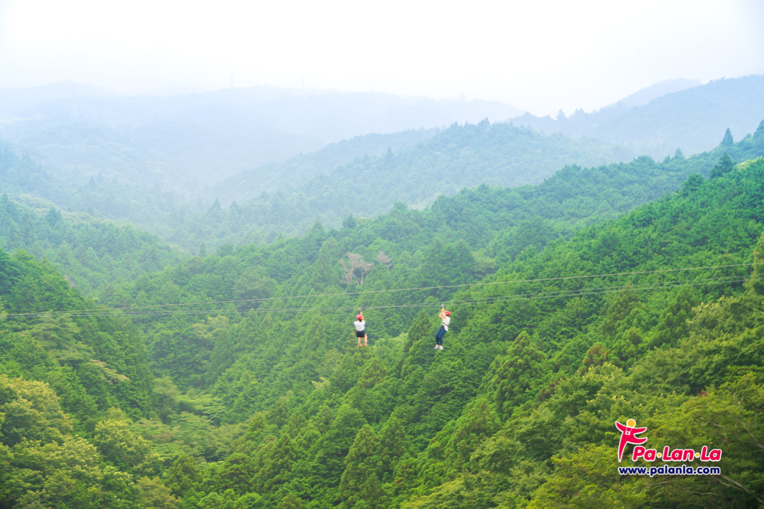 กิจกรรมโหนสลิงกลางหุบเขาที่อยู่ฝั่งเหนือของสะพานแขวนคนเดิน