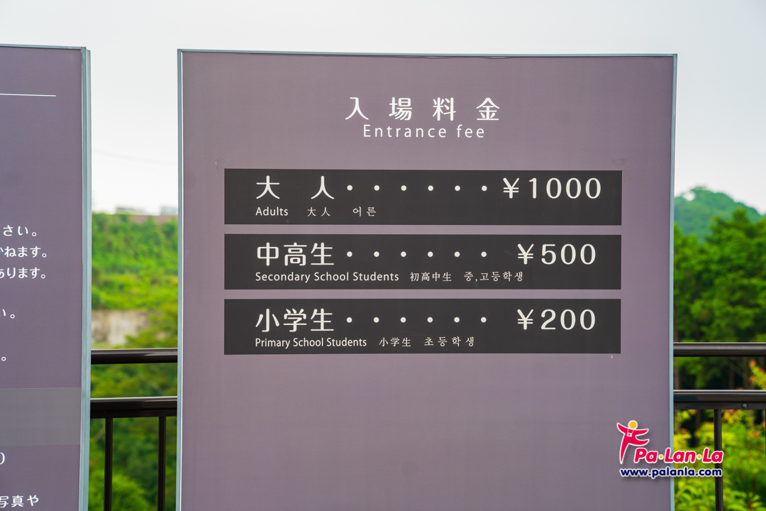 อัตราค่าเข้าชม : ผู้ใหญ่ 1,000 เยน / นักเรียนมัธยม 500 เยน / นักเรียนประถม 200 เยน / เด็กที่อยู่ต่ำกว่าชั้นประถมเข้าชมฟรี