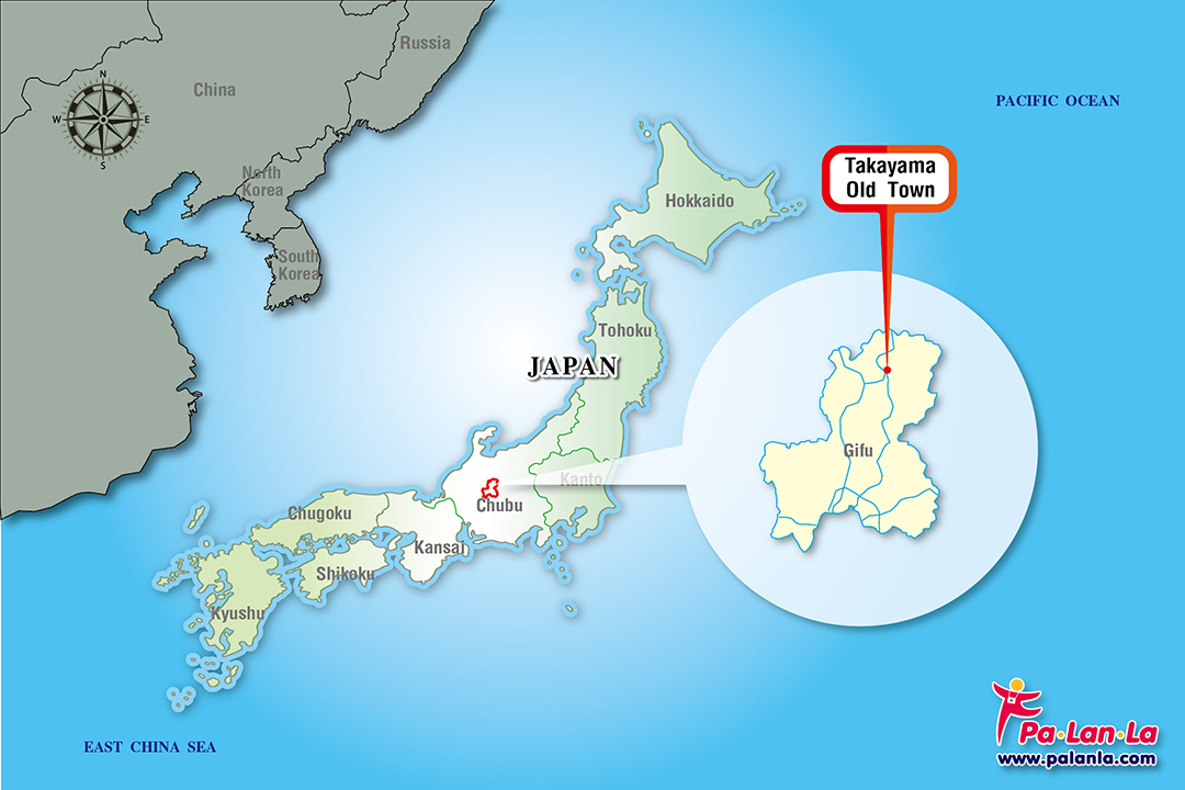 แผนที่ตั้ง ย่านเมืองเก่าทาคายาม่า จังหวัดกิฟุ ประเทศญี่ปุ่น
