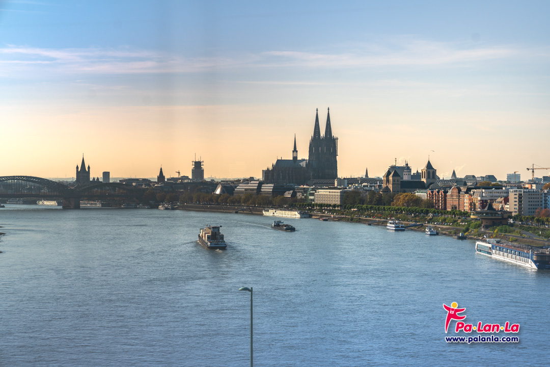 จากด้านบนสามารถมองเห็นทัศนียภาพของแม่น้ำและมหาวิหารโคโลญ