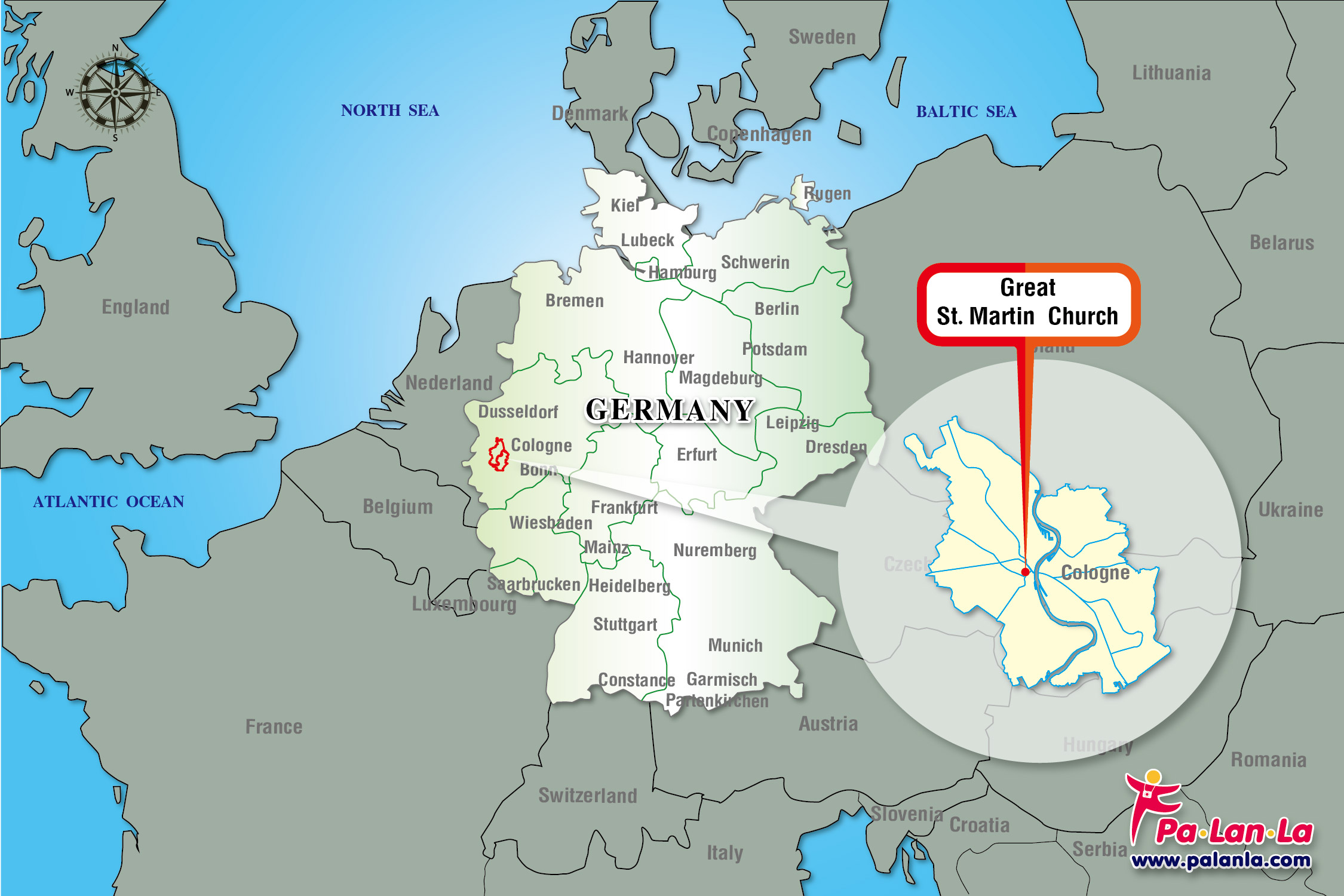 แผนที่ตั้ง โบสถ์เกรทเซนต์มาร์ติน (Great St. Martin Church) เมืองโคโลญ ประเทศเยอรมนี