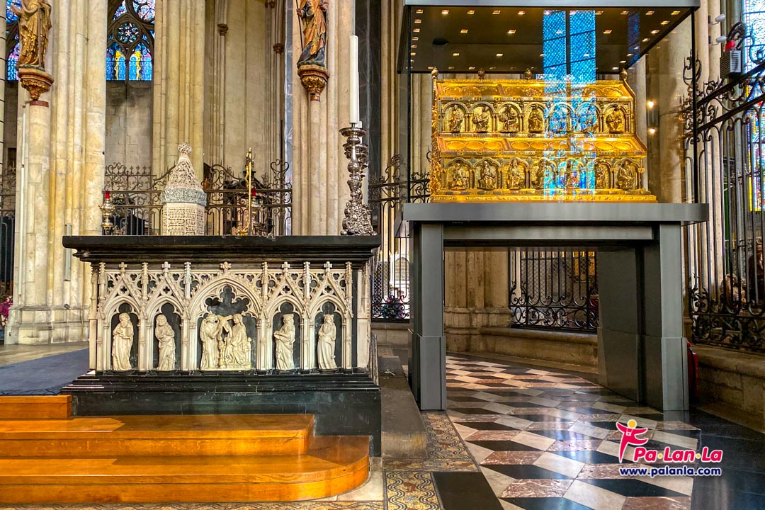 หีบสามกษัตริย์ที่ประดิษฐานอยู่บนแท่นยกสูงภายในมหาวิหารโคโลญ