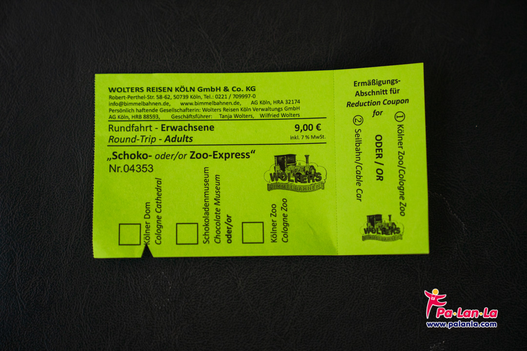 สามารถซื้อตั๋วได้ที่ศูนย์บริการการท่องเที่ยวเมืองโคโลญตรงข้ามมหาวิหารโคโลญ และจุดจอดรถบริเวณพิพิธภัณฑ์ช็อคโกแลตและสวนสัตว์