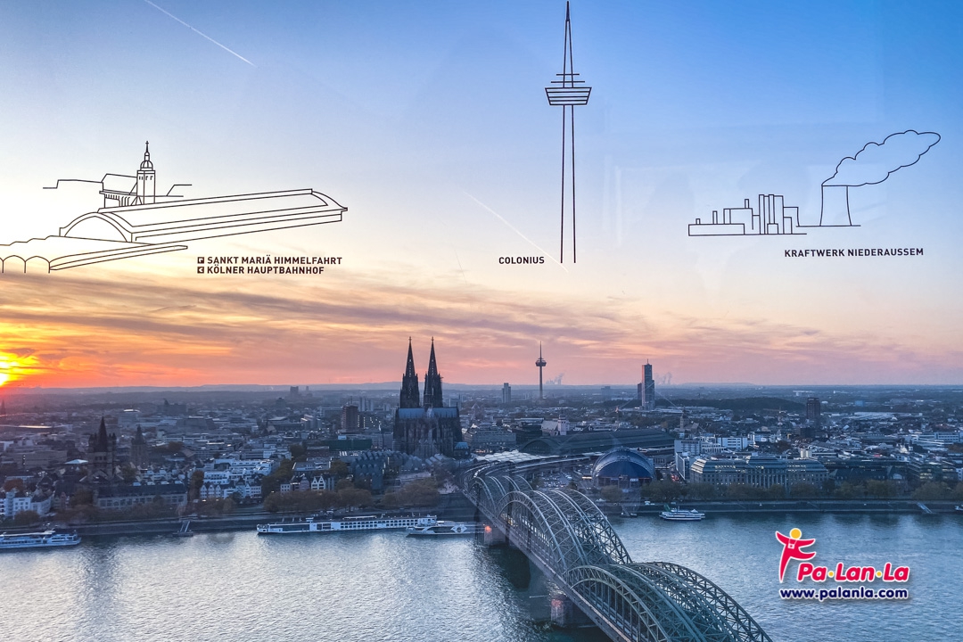 ชมทัศนียภาพเมืองโคโลญจากด้านบนหอชมเมืองโคโลญไทรแองเกิล พร้อมรู้จักแหล่งแลนด์มาร์กต่างๆ จากชื่อและสัญลักษณ์ที่อยู่บนรั้วกระจก