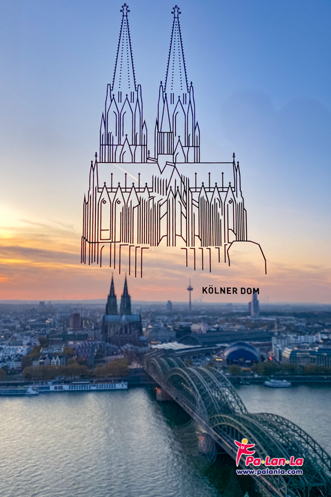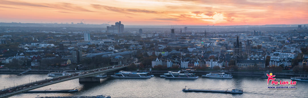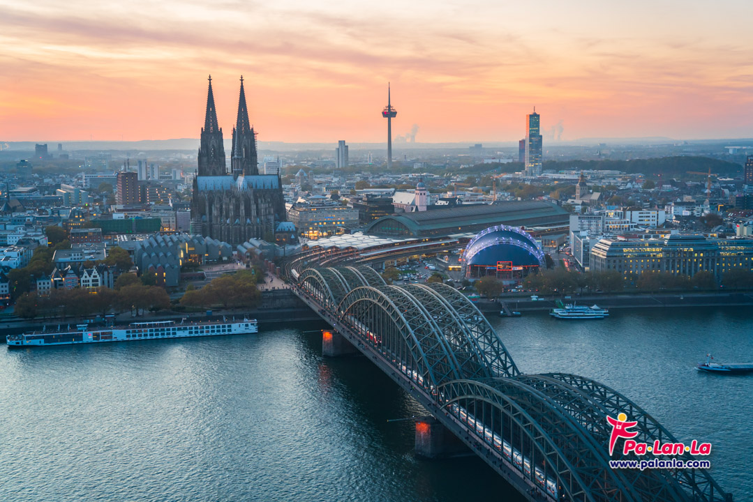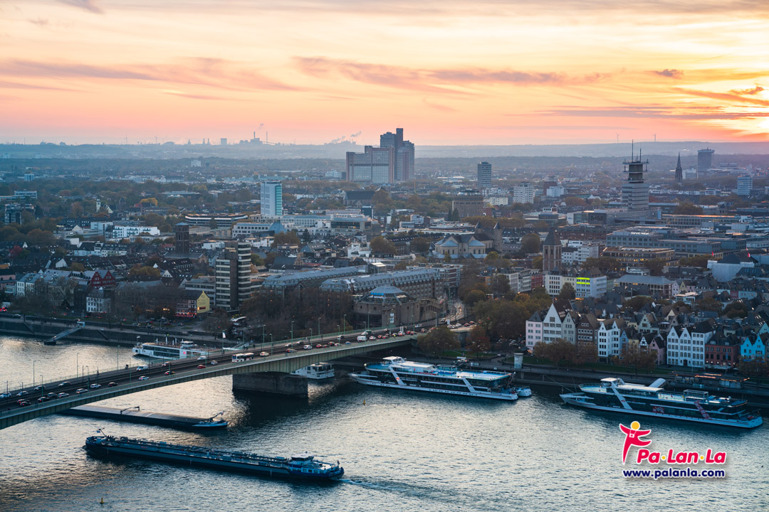 ทัศนียภาพฝั่งตะวันตกของเมืองโคโลญ สามารถมองเห็นแลนด์มาร์กของเมืองทั้งมหาวิหารโคโลญและสะพานโฮเอินซอลเลิร์นที่ทอดข้ามแม่น้ำไรน์