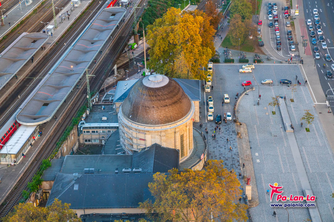 สถานี Köln Messe/Deutz เมื่อมองจากด้านบนหอชมเมืองโคโลญไทรแองเกิล