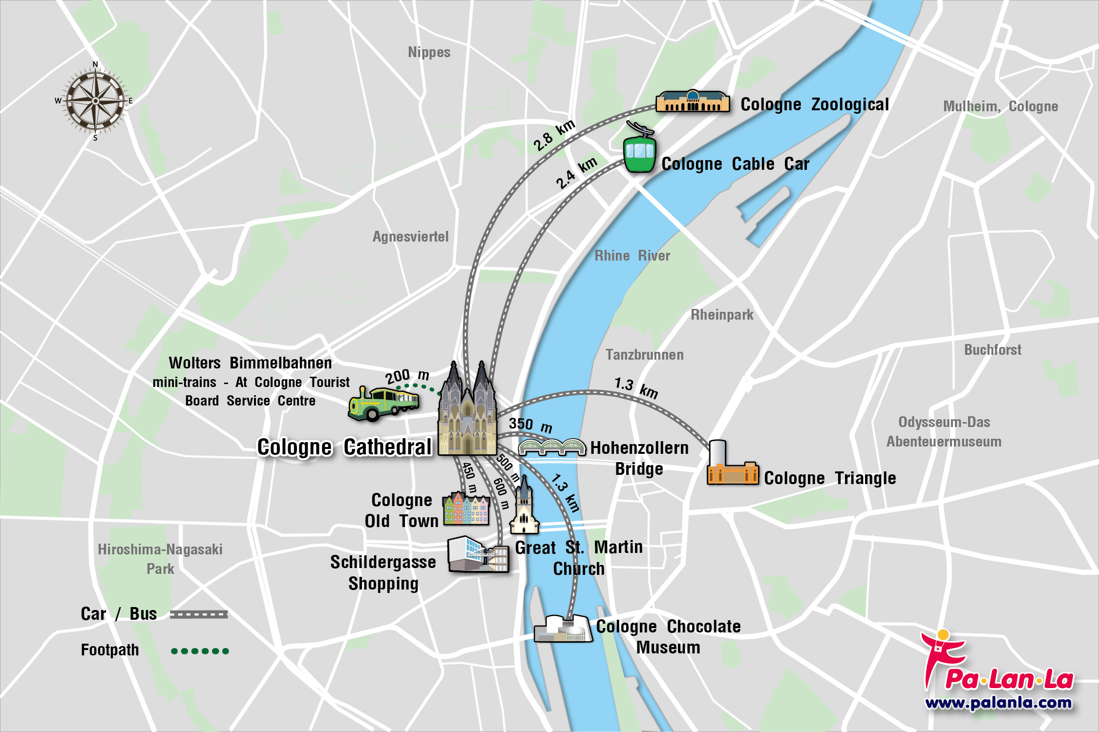 ข้อมูลการเดินทาง : จาก Cologne Cathedral สามารถเดินไปซื้อตั๋วขึ้นรถไฟ Wolters Bimmelbahnen mini-trains ได้ที่ Cologne Tourist Board Service Centre ที่อยู่ตรงข้าม Cologne Cathedral ประมาณ 200 เมตร โดยจุดขึ้นรถไฟอยู่หน้า Tourist Board Service Centre