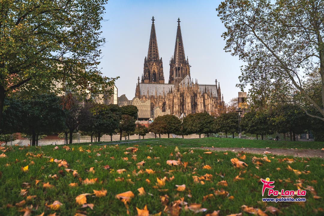 จากมุมถ่ายภาพเดียวกันกับภาพที่ 1 เราสามารถถ่ายภาพมหาวิหารโคโลญอันยิ่งใหญ่ตั้งอยู่เบื้องหลัง และถ่ายเก็บรายละเอียดของสนามหญ้าที่มีใบไม้ร่วงในช่วงที่กำลังจะเข้าสู่ฤดูหนาว ซึ่งนอกจากจะได้องค์ประกอบภาพที่มีสีสันสวยงามทางธรรมชาติแล้ว ยังได้ภาพที่สามารถถ่ายทอดช่วงเวลาในขณะนั้นได้อีกด้วย