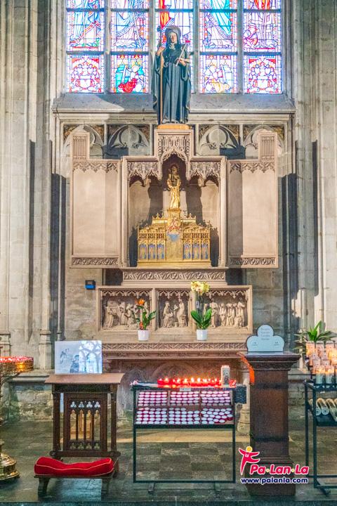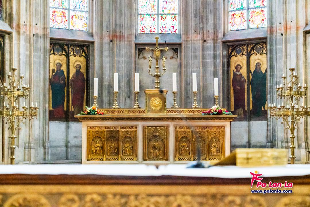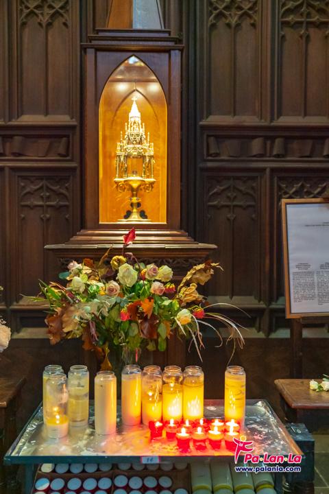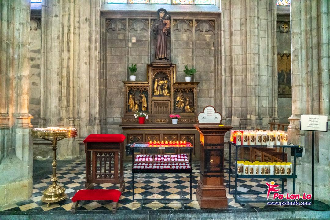 แท่นบูชาหน้าประติมากรรมรูปเคารพภายในโบสถ์