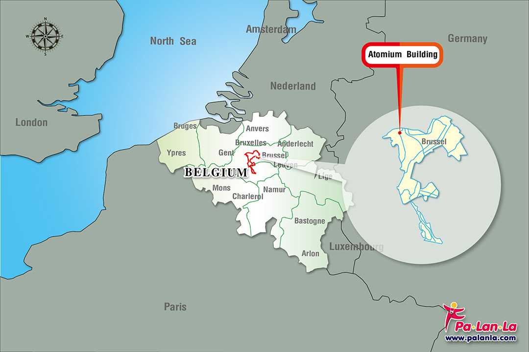 อาคารอะโตเมียม (Atomium Building) แลนด์มาร์กสำคัญประจำเมืองบรัสเซลส์ ที่แสดงถึงความก้าวหน้าด้านวิทยาศาสตร์ และเทคโนโลยีของเมืองได้เป็นอย่างดี นับเป็นสถาปัตยกรรมสำหรับงานเวิลด์เอ็กโป (World Expo) ที่ประสบความสำเร็จที่สุดหลังหนึ่งของโลก ปัจจุบันอาคารแห่งนี้เป็นจุดหมายสำคัญของนักท่องเที่ยวทุกคนที่มาเยือนเมืองบรัสเซลส์