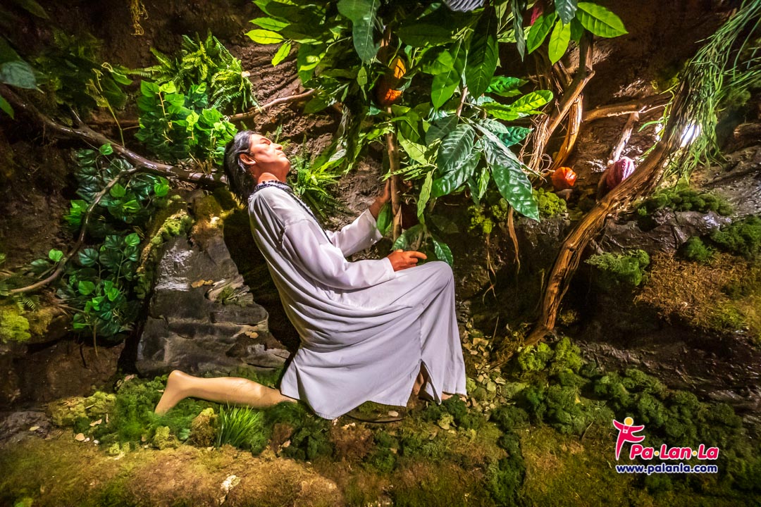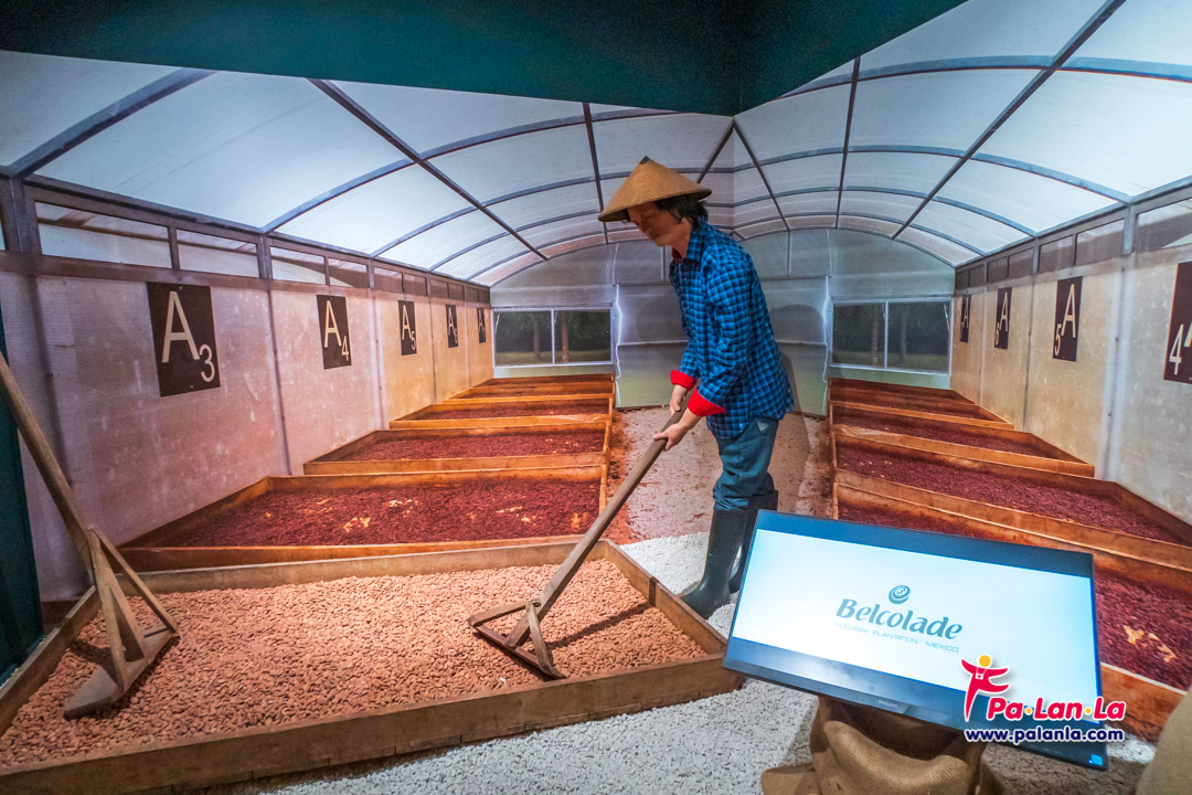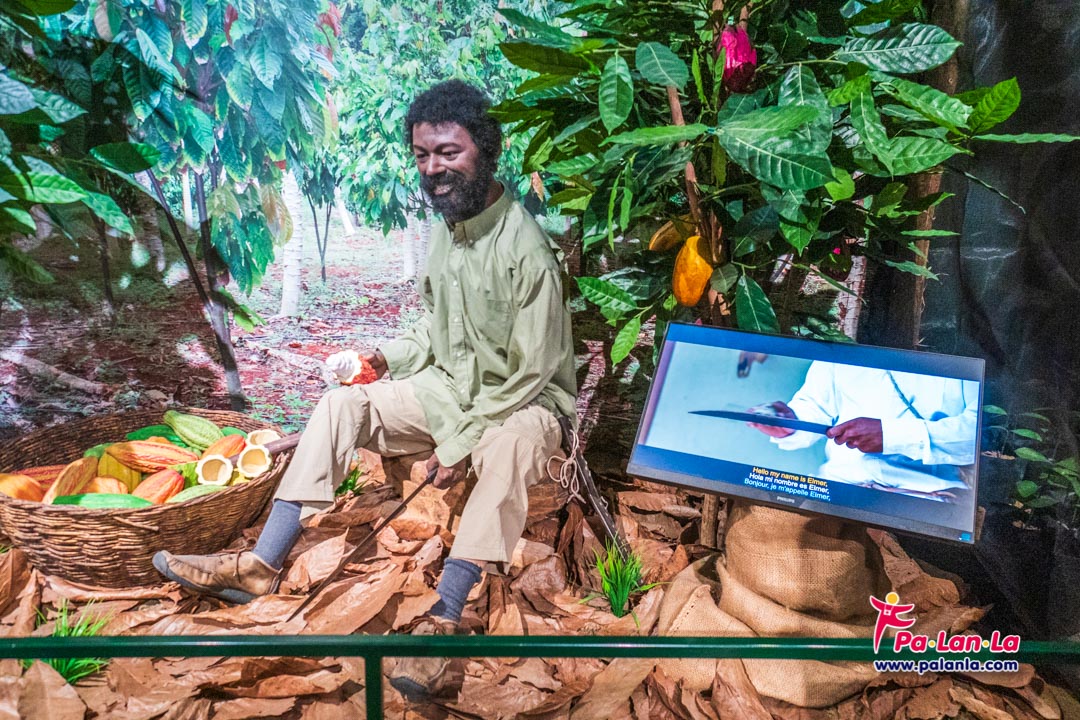หุ่นขึ้ผึ้งจำลองขั้นตอนการปลอกเมล็ดโกโก้