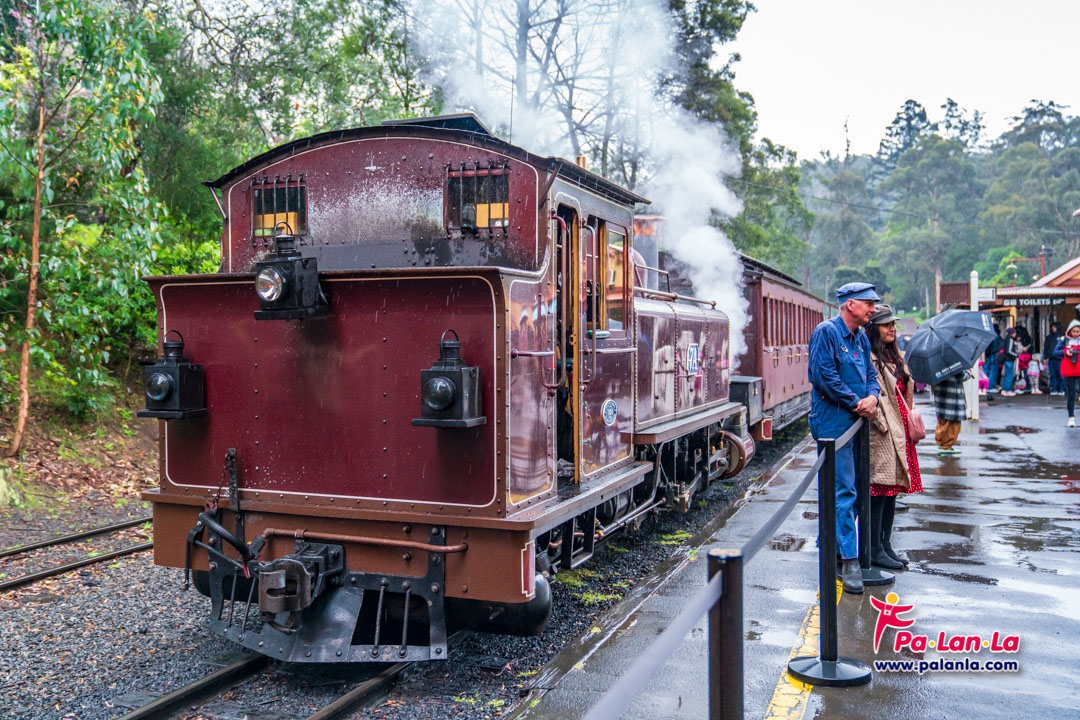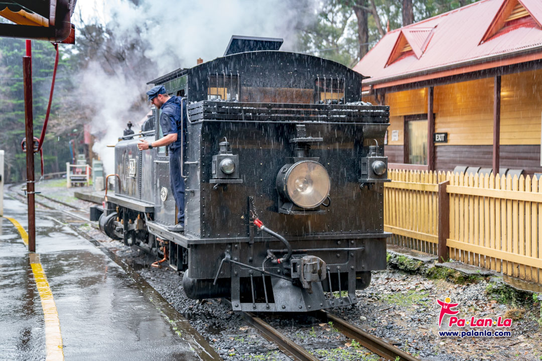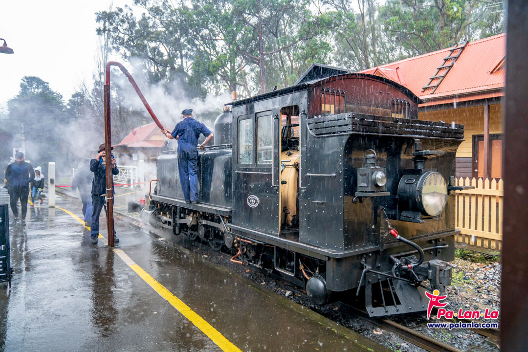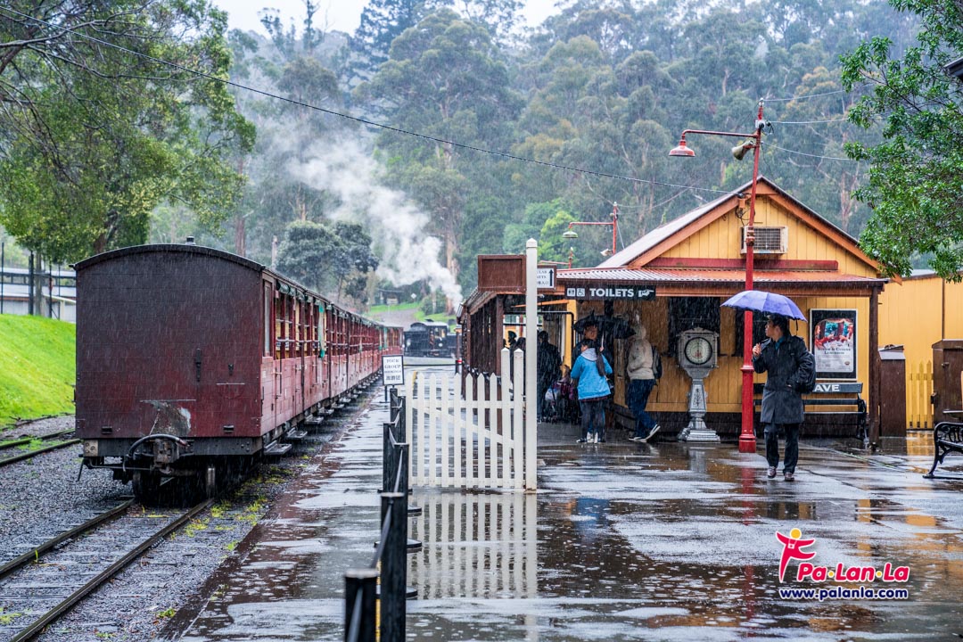 ท่ามกลางสายฝนแต่การให้บริการของ Puffing Billy ก็เป็นไปอย่างไม่ได้ว่างเว้น