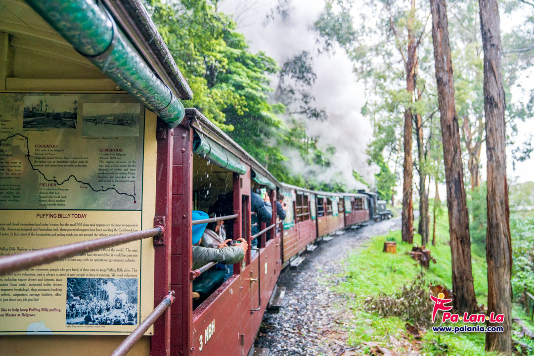 พัฟฟิ่ง บิลลี่ เรลเวย์ (Puffing Billy Railway) เป็นรถจักรไอน้ำโบราณขบวนที่นักท่องเที่ยวจะได้เพลิดเพลินไปกับการนั่งห้อยขาชมทิวทัศน์ผ่านป่าฝนอันเขียวชอุ่มและงดงามของเทือกเขา Dandenong แห่งรัฐวิคตอเรีย (Victoria) เป็นอีกหนึ่งไฮไลต์สำคัญที่หลายๆ คนอยากสัมผัสเมื่อมาเที่ยวเมลเบิร์น