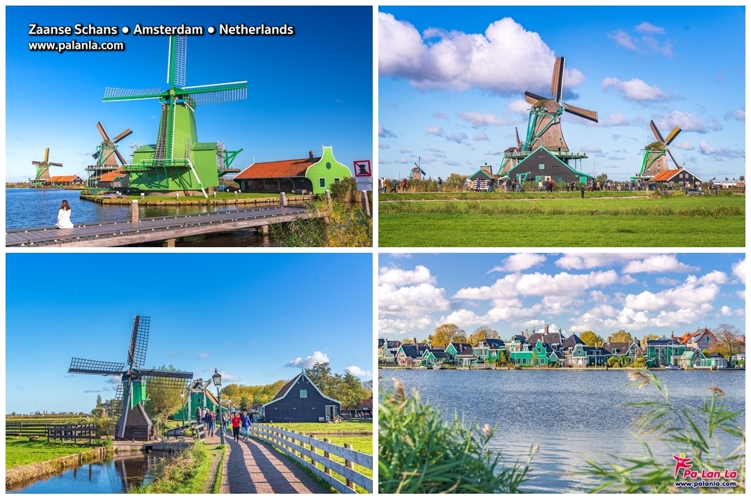 หมู่บ้านกังหันลมซานส์สคันส์ (Zaanse Schans) กังหันลมคือสิ่งที่มีความผูกพันใกล้ชิดกับวิถีชีวิตของชาวดัชต์ผู้อาศัยอยู่ในดินแดนที่ได้ชื่อว่าเป็นประเทศที่อยู่ต่ำกว่าระดับน้ำทะเลมายาวนาน และหมู่บ้านกังหันลมซานส์สคันส์ก็เป็นหนึ่งในสถานที่ท่องเที่ยวที่ได้รับความนิยมเป็นอันดับต้นๆ ของเนเธอร์แลนด์ ด้วยความสวยงามและบรรยากาศน่ารักๆ ของกังหันลมเก่าแก่ที่สร้างขึ้นในศตวรรษที่ 18 และ 19 ท่ามกลางทุ่งสีเขียวและแม่น้ำที่โอบล้อมแห่งนี้ ในแต่ละปีจึงมีนักท่องเที่ยวเดินทางมาเที่ยวชมหมู่บ้านกังหันลมซานส์สคันส์ร่วม 2 ล้านคน