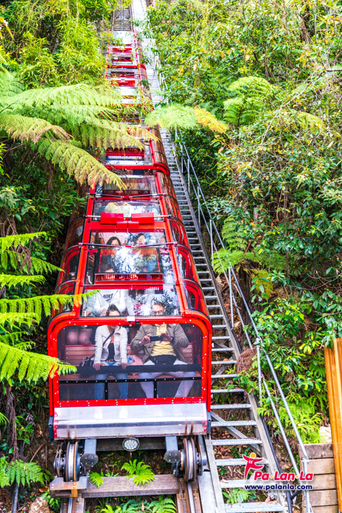 รถราง Scenic Railway ได้ชื่อว่าเป็นรถรางสายที่ชันที่สุดในโลก (รูปซ้าย) บางช่วงจะต้องลอดผ่านอุโมงค์ที่มีความมืดและแคบ (รูปขวา)