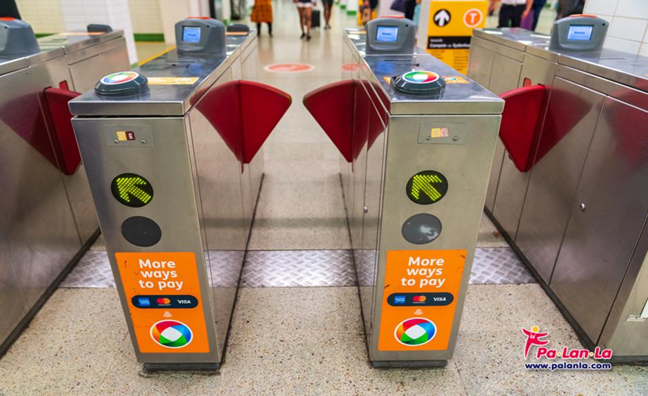 ที่กั้นและแท่นแตะบัตรเข้าและออก (Tap on / Tap off) ภายในสถานีรถไฟ