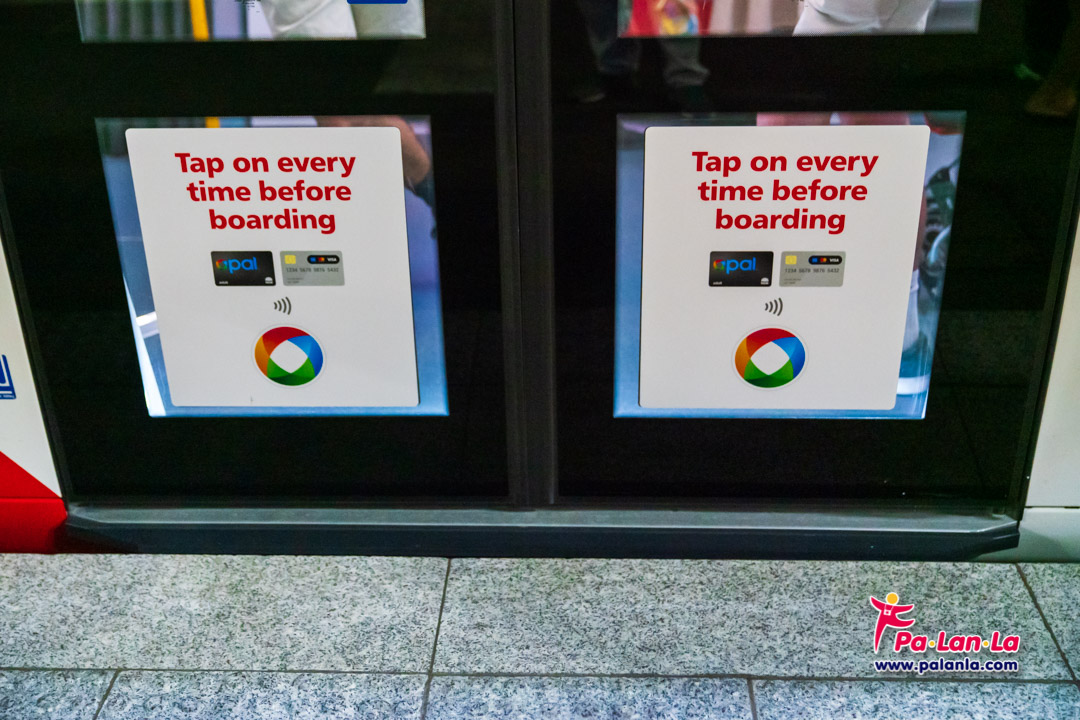 ที่แตะบัตรเข้าและแตะบัตรออก (Tap on / Tap off) บริเวณป้ายรถไฟฟ้ารางเบา (Light Rail)