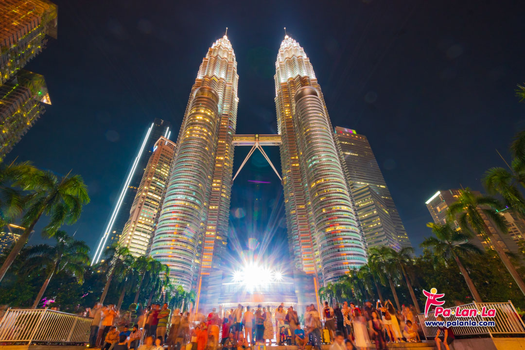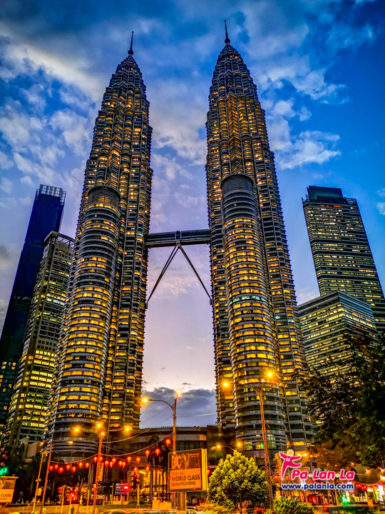 ปิโตรนาส ทวิน ทาวเวอร์ส (Petronas Twin Towers) ตึกแฝดที่สูงที่สุดในโลก ด้วยความสูง 451.9 เมตร 88 ชั้น หนึ่งในแลนด์มาร์กของประเทศมาเลเซีย ด้วยการใช้แท่งคอนกรีตที่ใหญ่ที่สุดและสูงที่สุดในประวัติศาสตร์มาเลเซียแล้วตกแต่งด้วยแผ่นสเตนเลส 33,000 แผ่นและกระจก 55,000 แผ่น เนรมิตเป็นตึกแฝดที่มีความเป็นเอกลักษณ์โดดเด่นในทุกมุมมอง ซึ่งถ้าหากถ่ายภาพในระยะใกล้ก็จะได้ภาพความสูงใหญ่ของตึกอย่างชัดเจน รวมถึง Skybridge (จุดชมวิวแห่งหนึ่งของเมืองกัวลาลัมเปอร์) และหากมองจากระยะไกลภายในสวนสาธารณะ KLCC Park, จากมุมถนน Jalan Ampang หรือจากโรงแรมใกล้เคียงก็จะได้มุมถ่ายภาพที่แตกต่างกันของตึกแฝดที่สวยงามทั้งกลางวันและกลางคืน