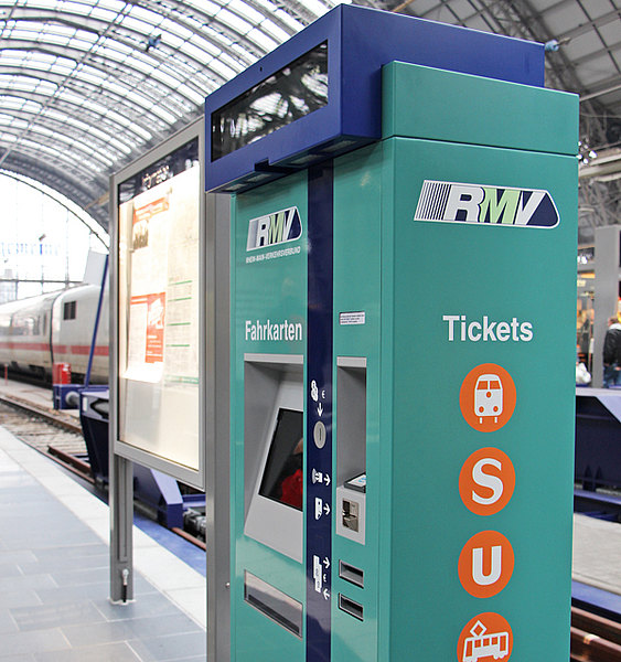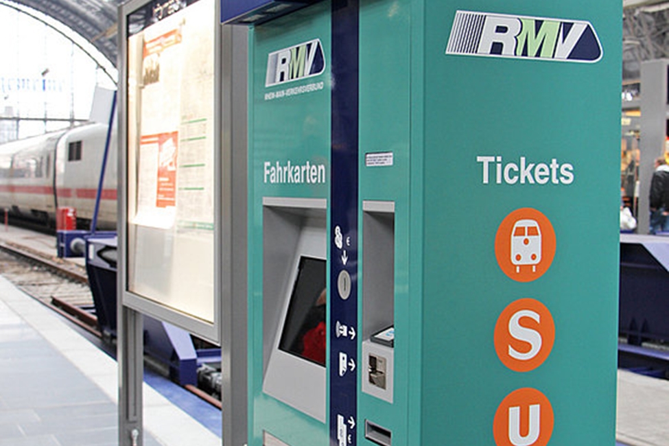 ตู้ขายตั๋วอัตโนมัติ RMV บริเวณสถานีรถไฟ (ขอขอบคุณภาพจาก https://www.rmv.de)