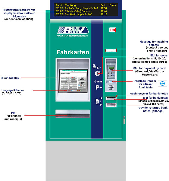 คำอธิบายวิธีใช้งานตู้ขายตั๋วอัตโนมัติ RMV (ขอขอบคุณภาพจาก https://www.rmv.de)