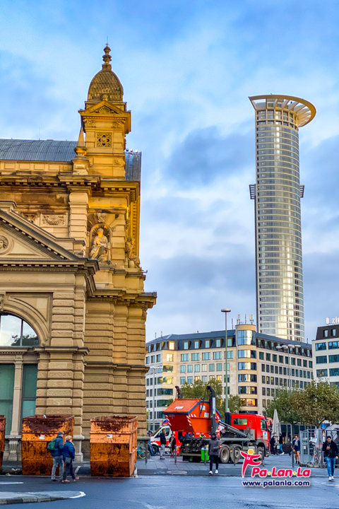 บริเวณอาคารด้านนอก (รูปซ้าย) ตึก Westendstrasse 1 ตึกที่มีความสูงอันดับที่ 3 ของเมืองแฟรงค์เฟิร์ต (รูปขวา)