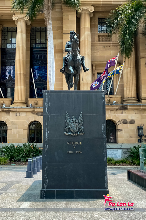 สิ่งที่ไม่ควรพลาดเมื่อไปเที่ยว King George Square คือชมอนุสรณ์รูปปั้นสิงโตทำจากทองสัมฤทธิ์ที่อยู่ทางเข้า King George Square ซึ่งเป็นส่วนหนึ่งของอนุสรณ์กษัตริย์จอร์จที่ 5 ซึ่งเป็นเครื่องบรรณาการแด่กษัตริย์จากประชาชนชาวบริสเบน โดยทำพิธีเปิดในปี ค.ศ. 1938