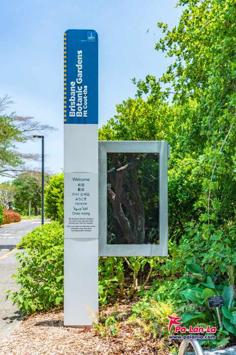 ป้ายแสดงเส้นทางไป Brisbane Botanic Gardens ซึ่งอยู่ใกล้ๆ กัน (รูปซ้าย) ป้ายแสดงข้อมูลเกี่ยวกับ Sir Thomas Planetarium (รูปขวา)