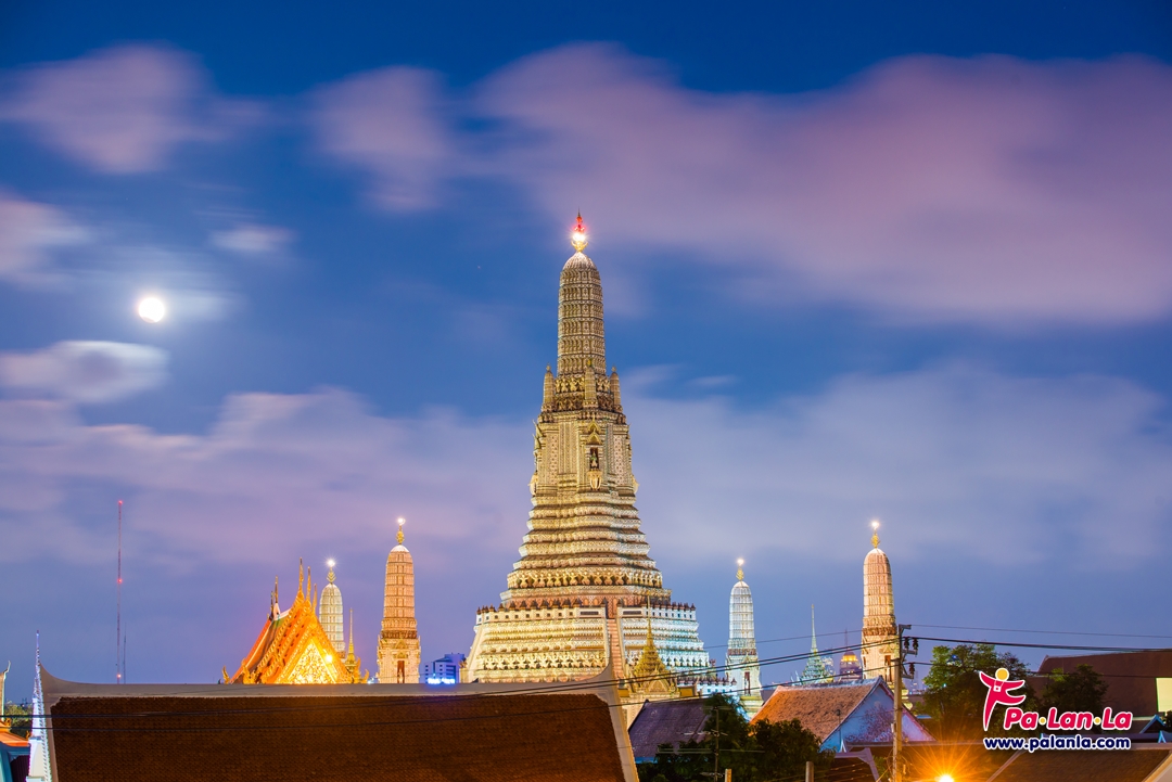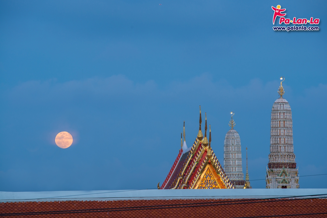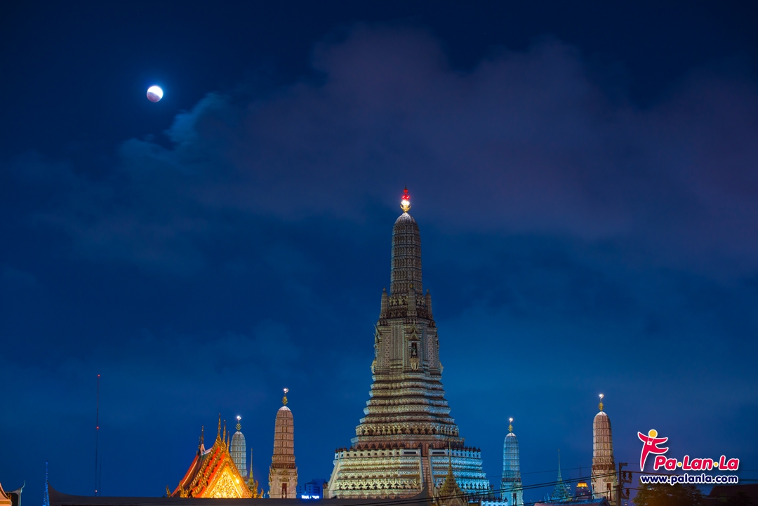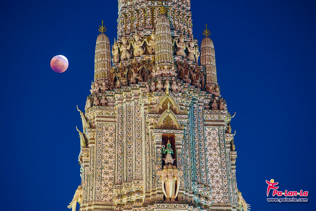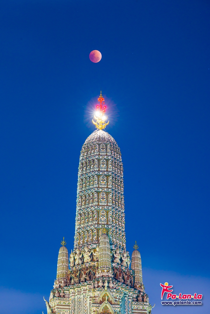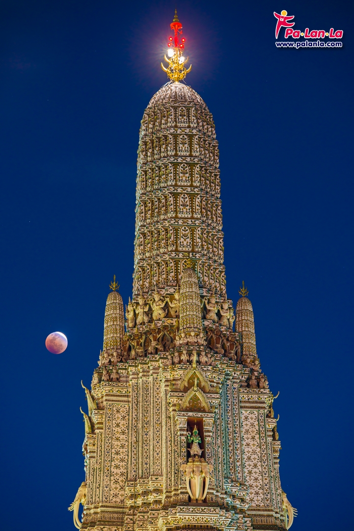 พระจันทร์สีเลือดลอยขึ้นสู่ยอดพระปรางค์วัดอรุณฯ