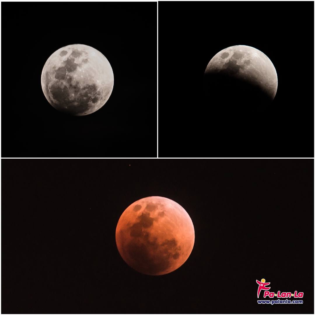 ลำดับภาพเหตุการณ์ตั้งแต่ดวงจันทร์เริ่มถูกเงาบดบัง จนกลายเป็นพระจันทร์สีเลือด