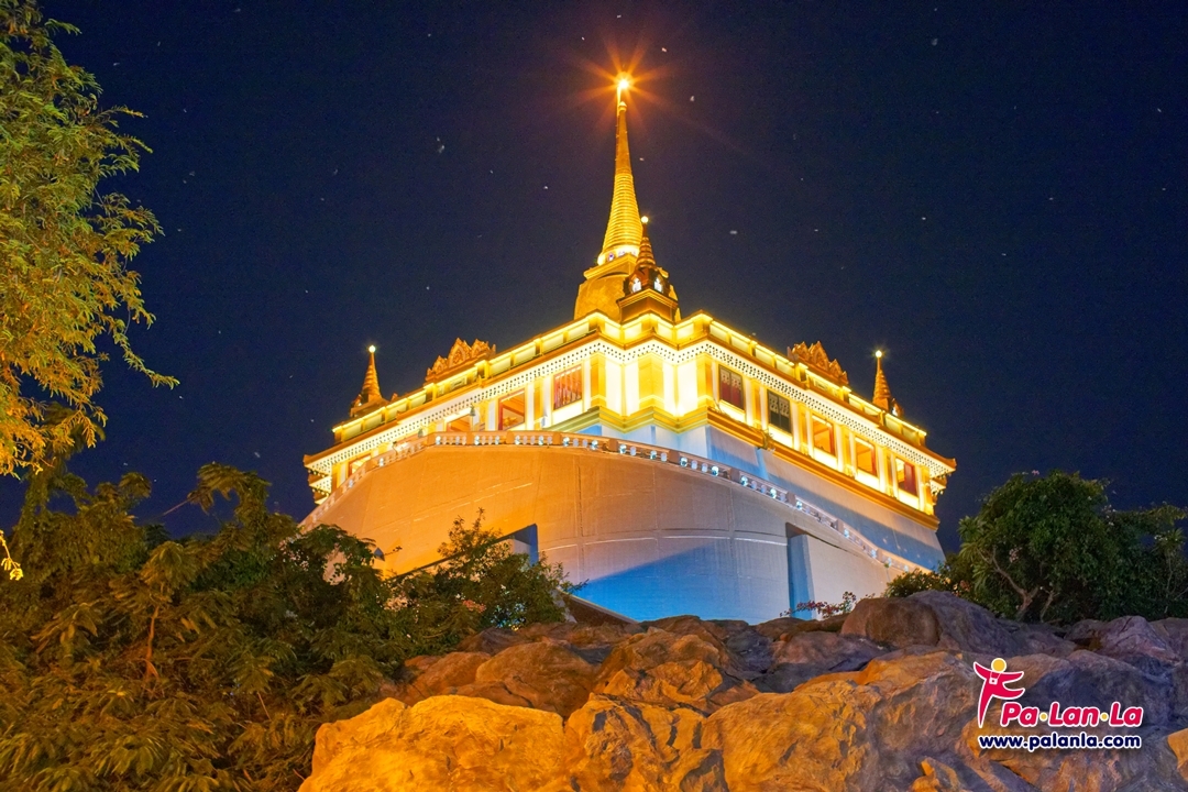 ความงดงามของเจดีย์ภูเขาทองในยามค่ำคืน