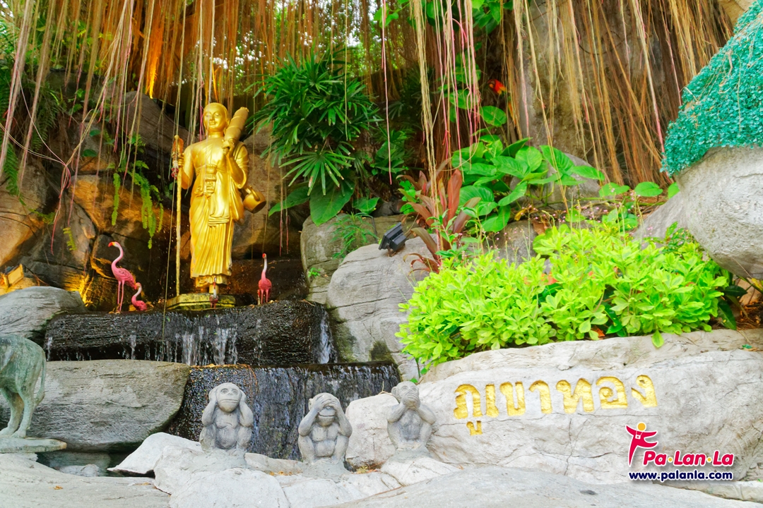 การประดับตกแต่งทางขึ้นเจดีย์ภูเขาทองด้วยน้ำตกและพระพุทธรูป