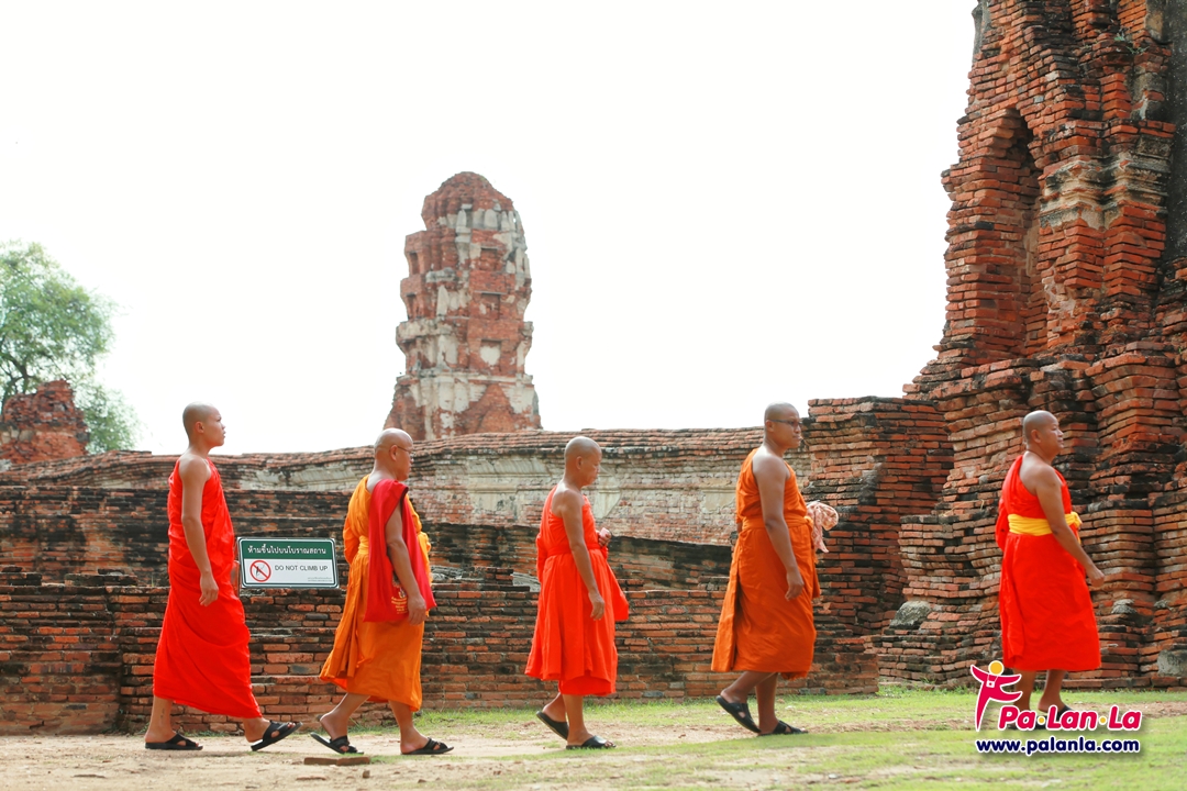 กลุ่มพระสงฆ์เดินชมพื้นที่ในเขตอุทยานประวัติศาสตร์อยุธยา