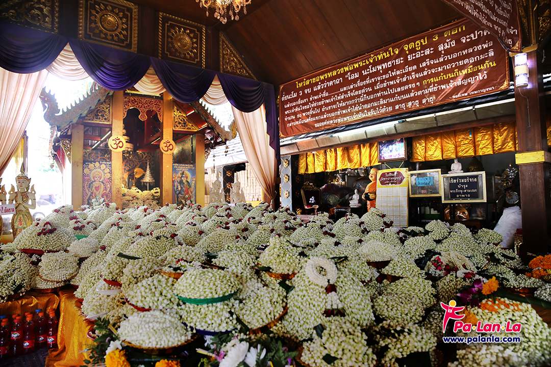 หลวงพ่อทันใจ กับดอกมะลิที่ประชาชนผู้ศรัทธานำมาถวายแก้บน
